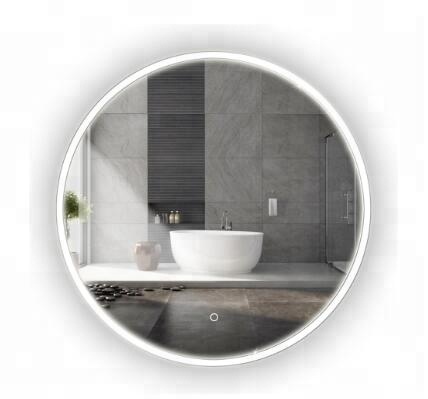 モダンなラウンドバックライトLEDバスルームミラーホームフレームレス装飾壁照明付きグラフィックデザインソリューション